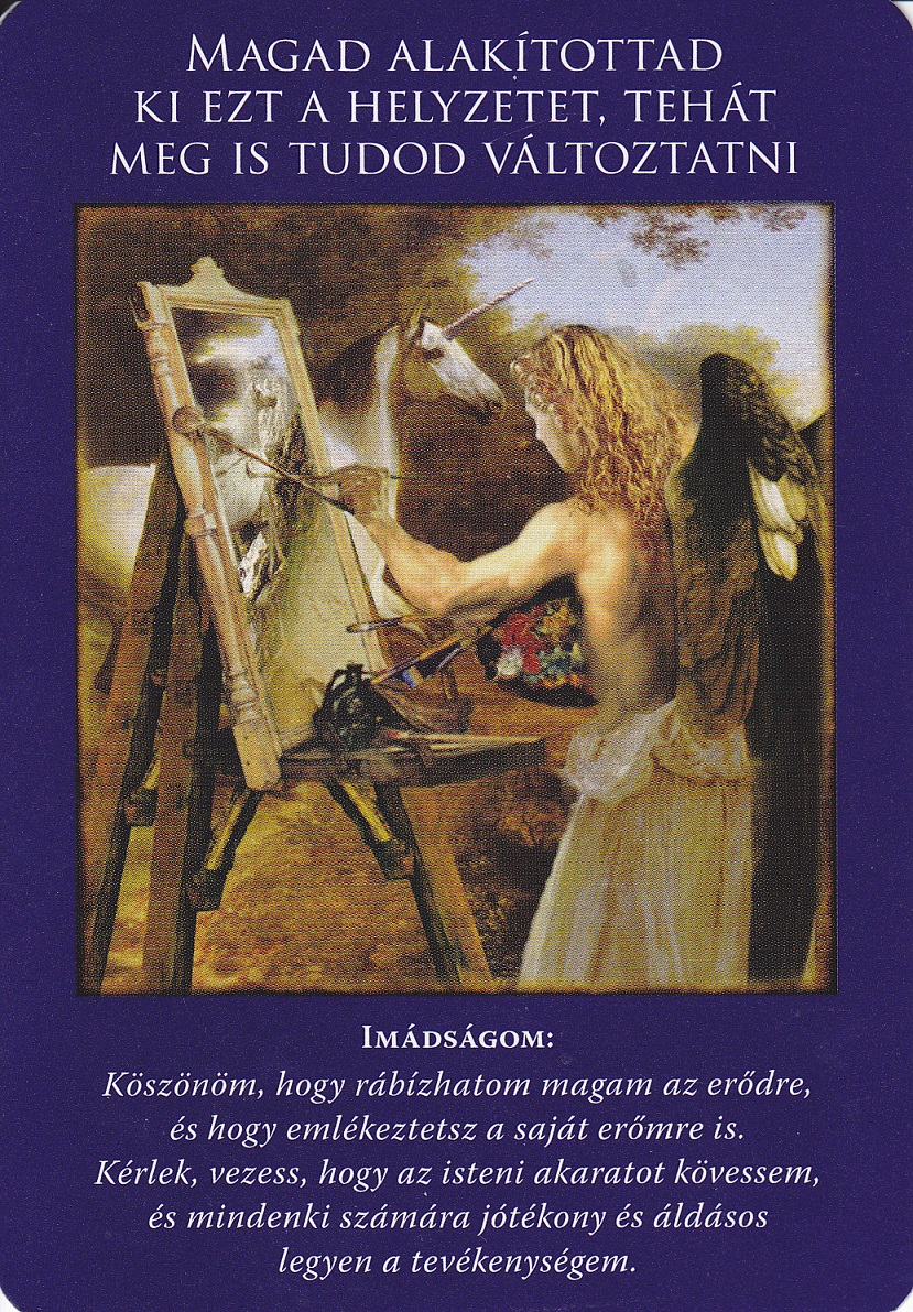 Ez a lap azt üzeni neked, hogy te is teremtő vagy, akit az isteni Teremtő képére alkottak. Nem áldozat vagy, sőt minden jogod és képességed megvan ahhoz, hogy alakítsd a mostani helyzetet, a kapcsolatodat. Ám amíg másokat hibáztatsz, vagy azt hiszed, hogy ők irányítanak téged, addig semmire sem mész. Ha Isten és Mihály arkangyal segítségét kérve kezedbe veszed az irányítást, a dolgok csodálatos módon megváltoznak majd.