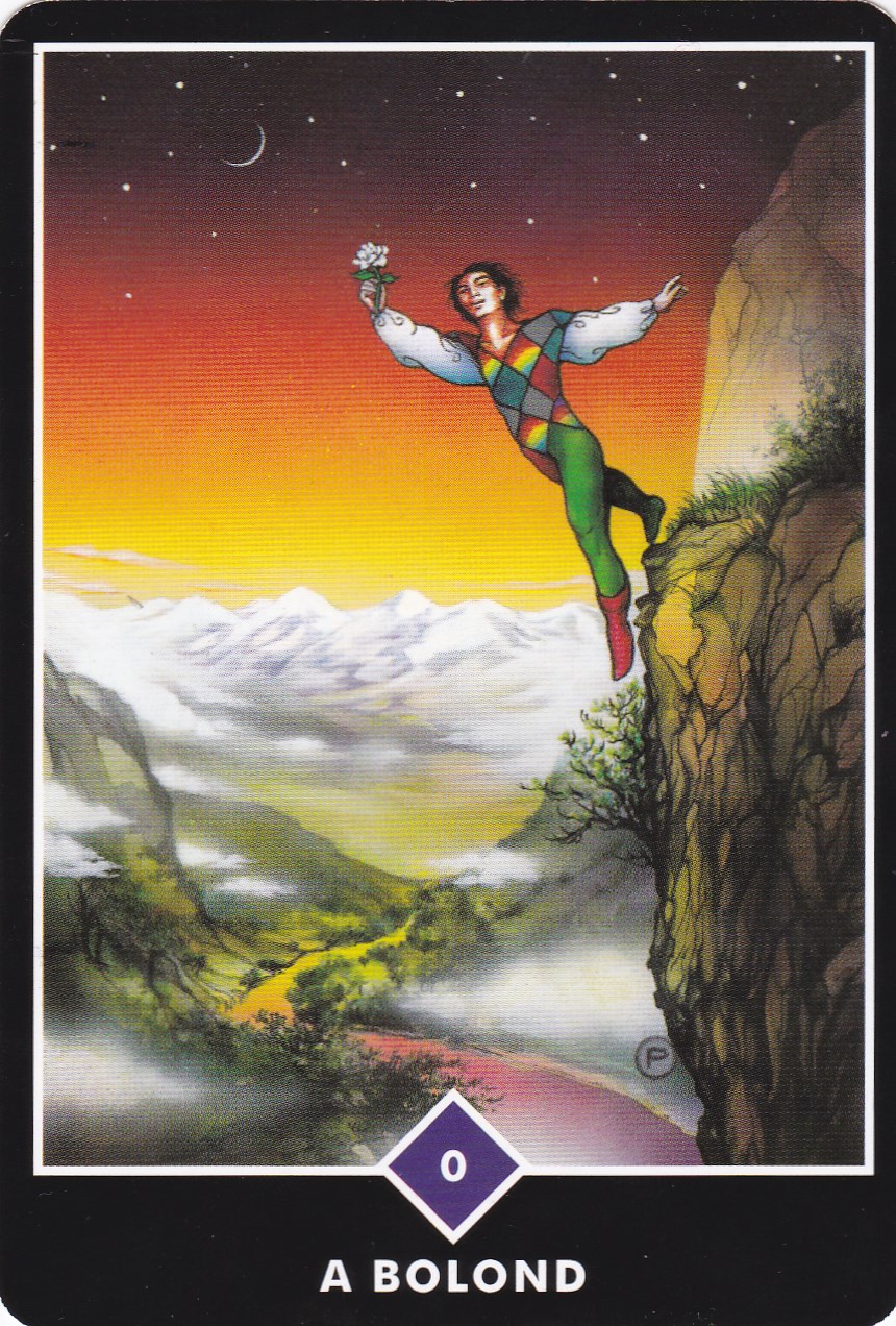 A Bolond minden pillanatban, minden egyes lépésével maga mögött hagyja a múltat. Kezében a tisztaságát, az ártatlanságát és a bizalmát jelképező fehér rózsán kívül semmit nem visz magával. Mellénye mintázata a tarot mind a négy elemének színeit tartalmazza, ezzel jelezve, hogy teljes összhangban él mindennel, ami körülveszi őt. Intuíciója tökéletesen működik. Ebben a pillanatban az egész világegyetem támogatja és segíti őt, hogy beleugorjon az ismeretlenbe. Kalandok várnak rá az élet dzsungelében.