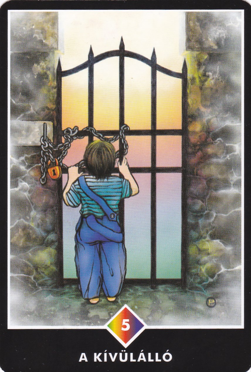 A kívülállóSzivárvány 5: A kívülálló Ezen a kártyán egy kisfiú áll a kapu mögött, és kifelé néz. Nagyon kicsi még, és meg van győződve róla, hogy nem juthat át a kapun. Nem látja, hogy a kapu láncán a lakat nyitva van - csak le kellene oldania a láncot. Amikor úgy véljük, kizártak bennünket valamiből, általában azt érezzük, hogy mi is ilyen tehetetlen kisgyerekek vagyunk. Nem meglepő, hisz ezek a tapasztalatok mélyen, kora gyermekkorunkban gyökereznek. A baj az, hogy mivel ez ennyire mélyen gyökerezik bennünk, újra és újra - mint valami rossz lemez - előkerül és lejátszódik az életünkben. Ez most egy jó alkalom, hogy megállítsd a lemezt, és ne gyötörd tovább magad azzal, hogy bizonyára "kevés" vagy ahhoz, hogy a többiek elfogadjanak, befogadjanak. Kutasd fel ennek az érzésnek a gyökereit a múltban, majd engedd elmenni ezt a régi fájdalmat. E megértés fényében már észreveszed a nyitott lakatot, és beléphetsz a kapun oda, ahol mindig is szerettél volna lenni. "Szóval most kirekesztettnek érzed magad. Jól van. Ez egy átmeneti időszak. Most ébernek kell lenned, nehogy fájdalommal és szenvedéssel töltsd fel magadat. Most, hogy Isten nincs többé veled, ki fog megvigasztalni? De neked nincs is szükséged vigasztalásra. Az emberiség nagykorúvá ért. Légy férfi vagy légy nő, és állj a saját lábadra... Az egyetlen mód arra, hogy kapcsolatba kerülj a létezéssel az, hogy elindulsz befelé, hiszen legbelül, a középpontban még mindig él ez a kapcsolat. Fizikailag már rég elválasztottak az édesanyádtól. Erre az elválasztásra mindenképpen szükség volt ahhoz, hogy te magad is teljes értékű egyénné válhass. De a világegyetemtől senki nem választott el téged. Az univerzumhoz a tudatoddal kapcsolódsz. Ezt most még nem látod, ezért nagyon figyelmesen, éberen és nyitott szemmel kell mélyre ereszkedned önmagadban, és akkor megtalálod ezt a kapcsolatot. Ez a kapcsolat a buddha!" Osho Forrás: OSHO ZEN Tarot kártya