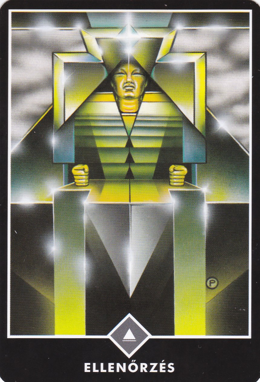A kontrollnak megvan a maga ideje és helye, de ha ez irányítja életünket, akkor végül teljesen megmerevedünk. Ez az alak a kártyán teljesen bezárta magát az őt körülvevő piramis-idomok közé. A fény ott ragyog és csillog fényes felületein, de át nem hatolhat rajtuk. Olyan, mintha belé mumifikálódott volna ebbe a monstrumba, melyet maga köré épített. Kezeit ökölbe szorítja, tekintete üres, szinte vak. Testének az asztal alatt látható része egy késhegy; olyan vágószerszám, amely megoszt és szétválaszt. Világa tökéletes és rendezett, de élettelen - nem engedhet meg semmilyen spontaneitást vagy gyengeséget.