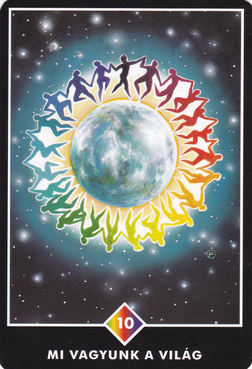 Az emberiséget itt a föld mandalája körül táncoló lények szivárványa szimbolizálja. Az emberek egymás kezét fogva örvendeznek, és hálásak az élet ajándékáért. Ez a kártya azt az időszakot jelképezi, amikor tökéletesen kapcsolódunk egymáshoz, és belső gazdagságunk megosztásával mindannyian hozzájárulunk a teljességhez. Itt nincs ragaszkodás és nincs kötődés. Ez egy kör, ahol nem ismerik a felsőbbrendűség és az alsóbbrendűség félelmét.