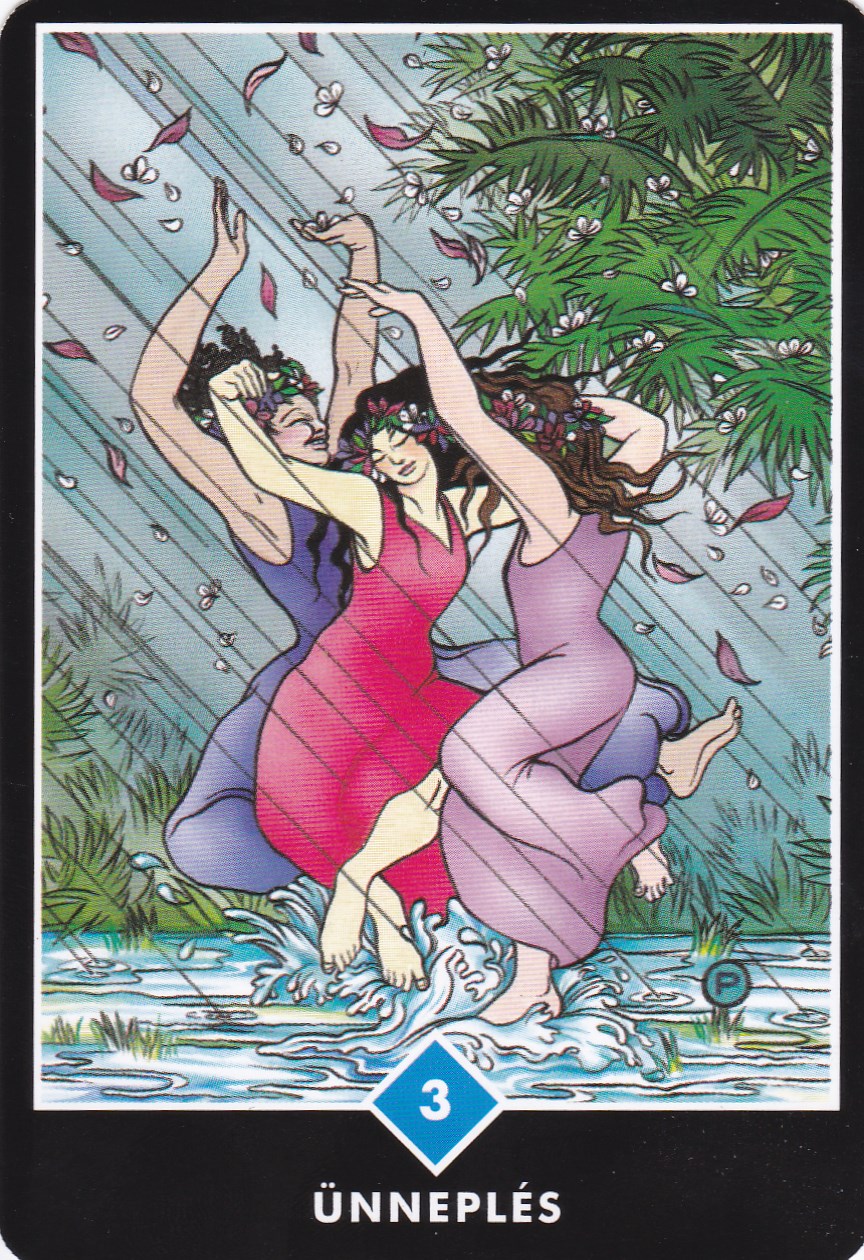 Amikor ezt a kártyát húzod, az arra utal, hogy most egyre inkább észreveszed magad körül a sok lehetőséget, mely mind ünneplésre ad okot, és hogy ünneplésed másokat is megfertőz. Ne bajlódj házibulik megszervezésével - csak engedd ki a hajad, dobd le a cipődet és kezd el itt, most a tócsákban táncikálni. Egyfolytában folyik a buli körülötted mindenütt!